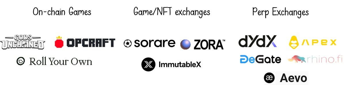 App rollups are emerging as the clear winner in scaling a specific set of Ethereum’s applications. These applications benefit from permissionless and strong ownership guarantees but don’t require simultaneous interactions between all the application users. Fully on-chain games (FOGs) are the best example that fit this description. FOGs benefit from strong in-game asset ownership, permissionless game participation, and permissionless game modding. Still, most games don’t require that all players interact with each other at the same moment. Other applications that can benefit from the app rollup scaling strategies include NFT marketplaces, Perpetual exchanges, and on-chain AI inference.