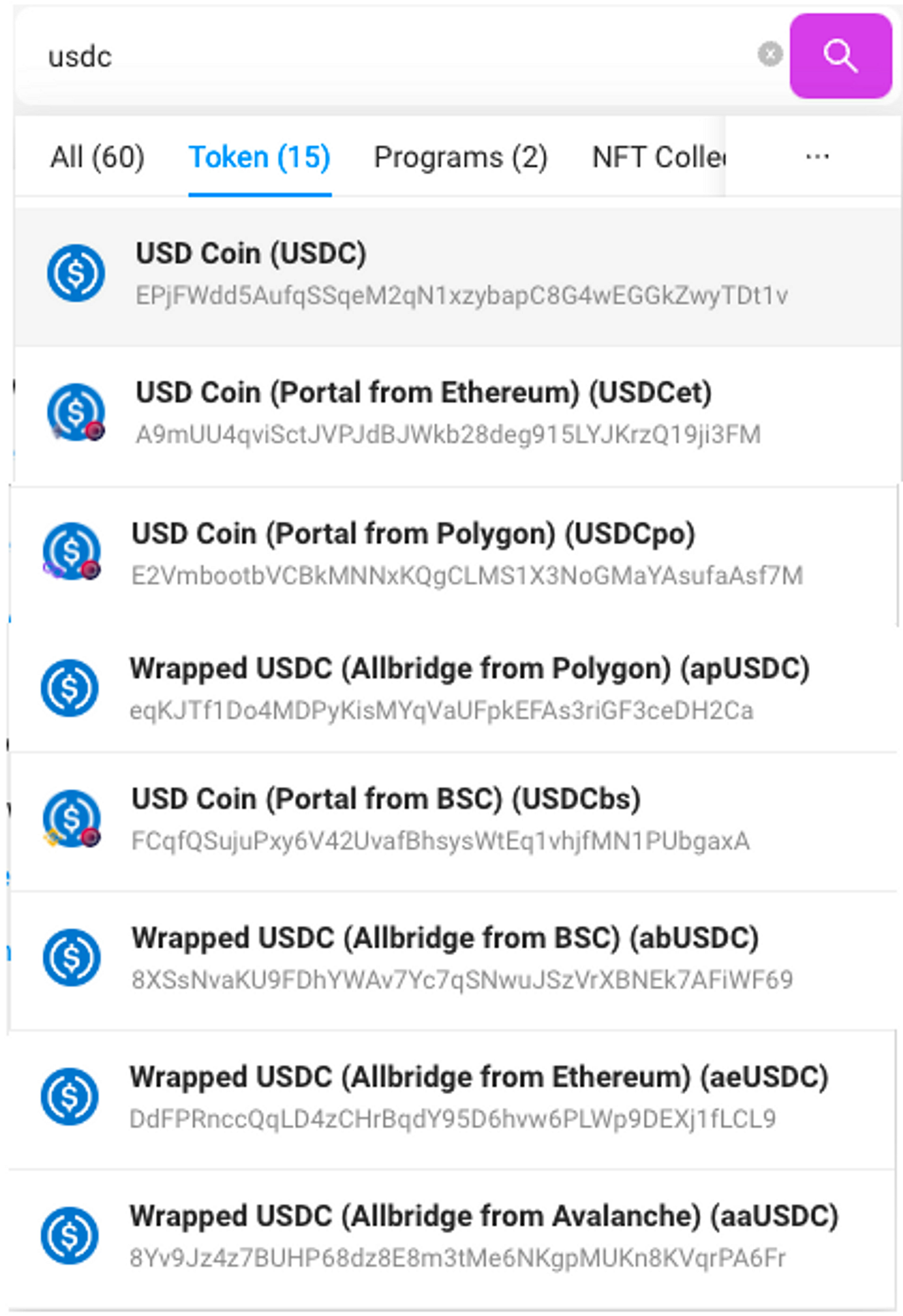 The zoo of bridged USDC on Solana. This is not the complete list.