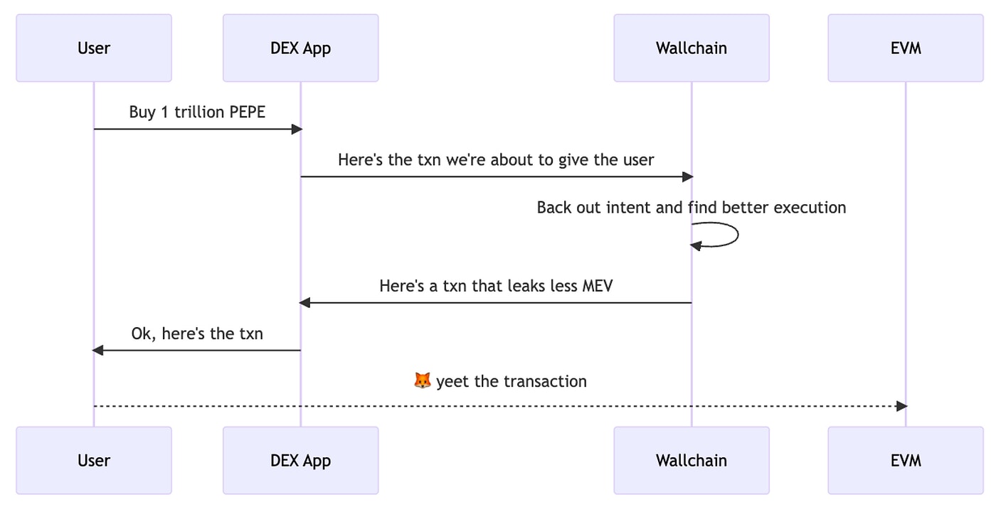 For less sophisticated users, Wallchain.xyz takes an interesting approach by partnering directly with popular dApps where users leak MEV. By analyzing the transactions that the app generates, and inferring the user intent, Wallchain can sometimes propose better transactions. This happens without the user having to change behavior, while protecting them of bad outcomes.