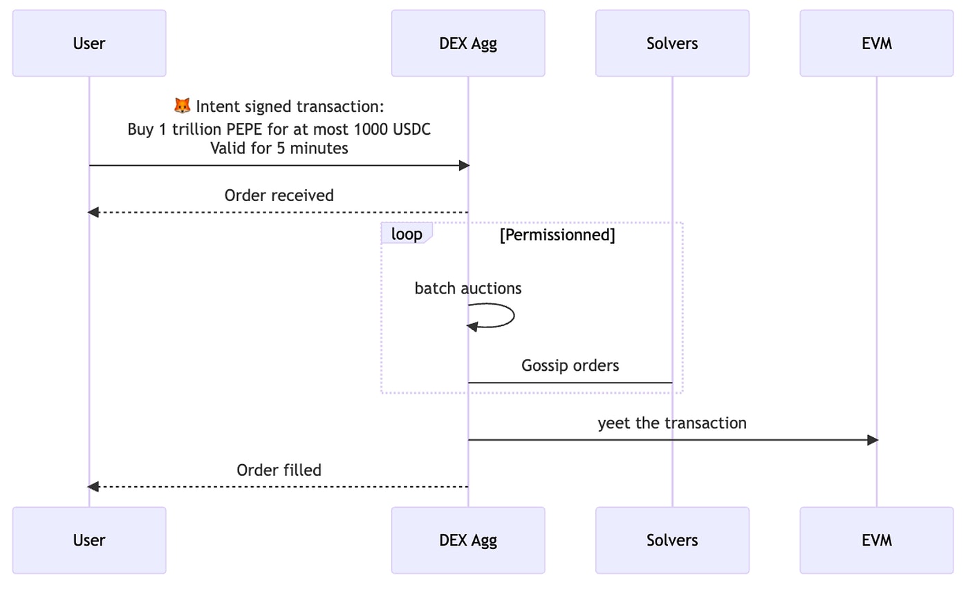 The same thing is happening on NFT marketplaces. So the move away from transactions is not new. These signature requests are basically application-specific intents held by a centralized party, to be turned into transactions in the future. The market preceded definitions, and we’re getting around to coin the right words.