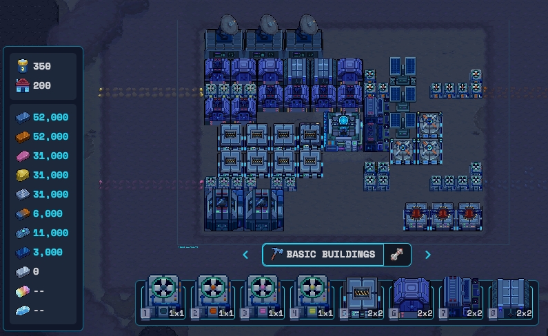 Since Primodium’s core loop centers on constructing an alien factory, there is inherent progression that is visualized to the player. And every time the player upgrades their base, they gain access to new buildings. These not only help to introduce complexity more slowly, but are rewards for past success. And since you control the layout of your base, it is rewarding to see your base become more aesthetic.