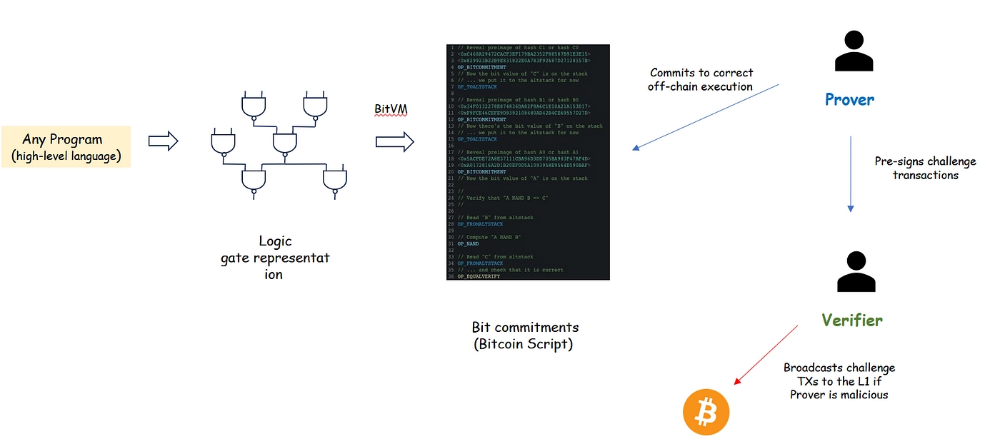One unique effort to expand the Bitcoin L1 functionality is BitVM. The concept builds on the Taproot upgrade to Bitcoin. The concept of BitVM is to expand the functionality of Bitcoin via off-chain execution of programs with the assurance that the execution can be challenged on-chain via fraud proofs. Although it may seem possible that BitVM can be used to implement arbitrary logic off-chain, in practice the cost of executing the fraud proof on the L1 grows quickly with the size of the off-chain program. This issue limits the applicability of BitVM to specific problems such as trust-minimized BTC bridge. Many of the upcoming Bitcoin L2s leverage BitVM for bridge implementation.