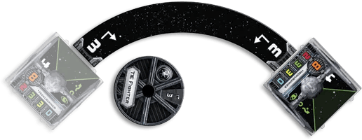 Movement of a Tie Fighter after revealing secret movement selection (Star Wars X-Wing).
