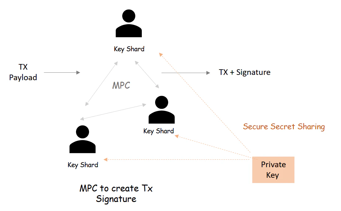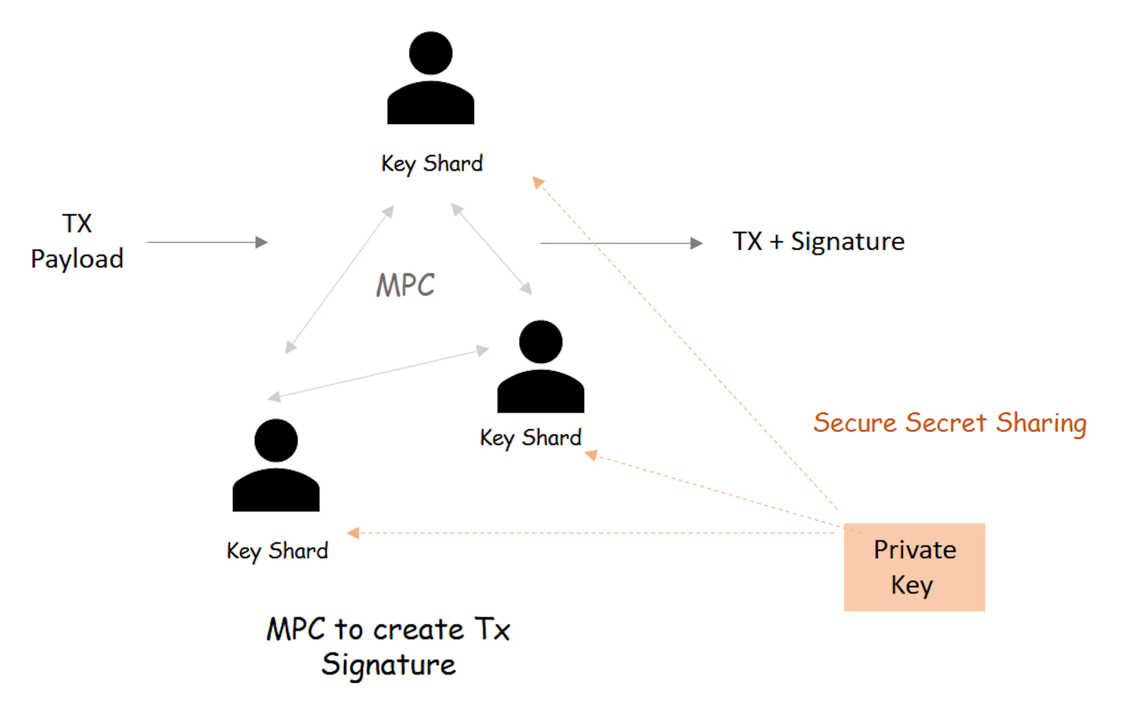However, MPC can be used for more than securing private keys. In general, MPC solves the problem of performing compute over private inputs, i.e., data, and only revealing the output of the computations without breaking the privacy of the inputs. In the specific context of asset custody, the private inputs are the shards of the private key. The owners of these shards collaborate to perform “computing” over these private inputs. The computing here is generating a transaction signature. The multi parties here collectively generate and decrypt the signature without any of them getting access to the private inputs, i.e., the private key.
