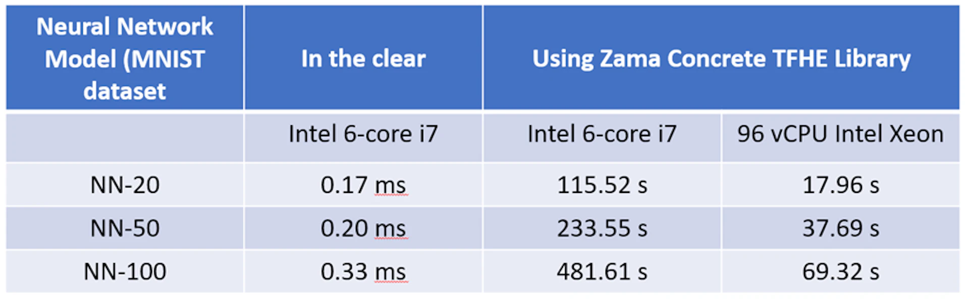 Even with advanced implementations, FHE operations are often 1000x to 1,000,000x more computationally expensive than regular computations. This complexity limits the possible throughput of on-chain FHE applications. Current estimates from Inco Network indicates a throughput between 1–5 TPS for FHE operations. With GPU and FPGA acceleration, this throughput can be accelerated by 10–50x.
