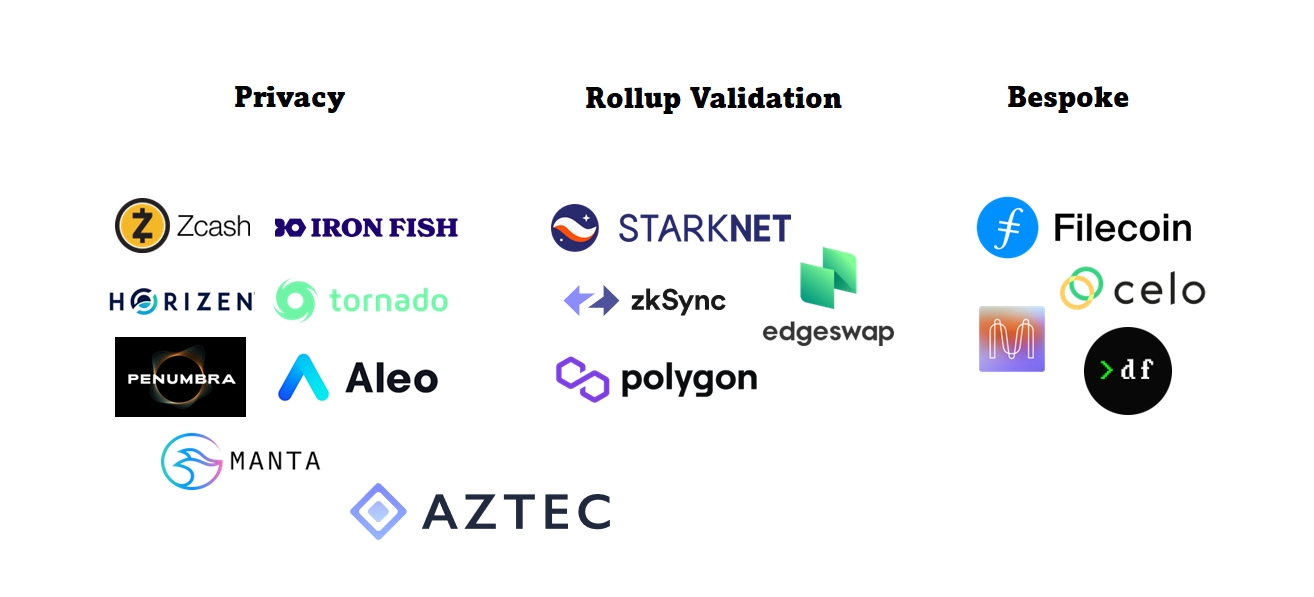 Map of ZKP applications